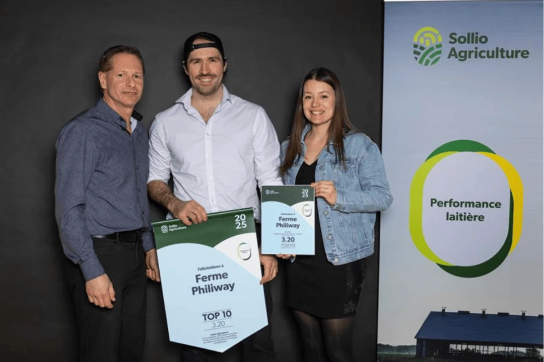 C’est maintenant l’heure de révéler le top 10 du concours Performance Laitière 2025, organisé par Sollio Agriculture. Comme certaines fermes sont au coude à coude dans les résultats, vous trouverez plutôt 11 fermes dans le classement, qui démontre l’excellence des meilleurs producteurs de lait du Québec et de l’Est de l’Ontario. Bravo à toutes et à tous!