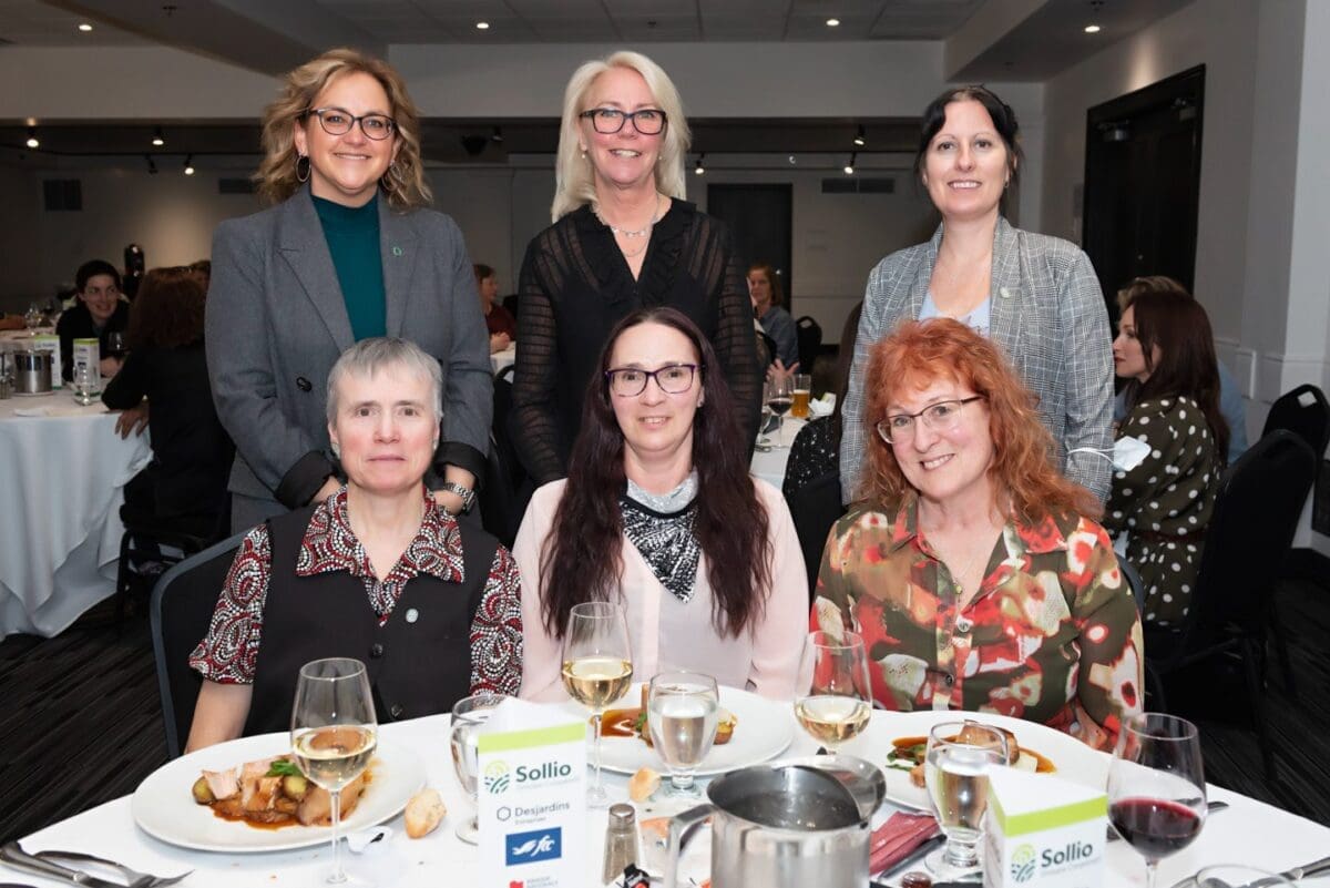 Sur la photo, de gauche à droite: Mme Jeannine Chartrand, présidente de Covris Coopérative, Mme Josée Boudreault, Mme Valérie-Lemaire Jodoin, directrice des communications pour Agiska Coopérative, M. Louis-Philippe Rivard, Mme Émilie Claveau, coordonnatrice des communications pour Covris Coopérative, Mme Lysanne David, directrice des communications et secrétaire générale d’Uniag Coopérative.