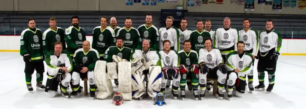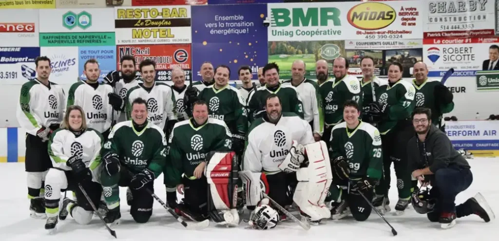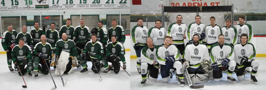 Uniag Coopérative a récemment eu le plaisir d’organiser trois parties de hockey de hockey pour ses membres. Cette année n’a pas été différente et c’est près de 70 passionnés qui ont enfilé leurs patins pour se livrer à des parties amicales à l’Aréna de Napierville, QC (le 21 janvier), à l’Aréna de Sainte-Martine, QC (le 31 janvier) et au Complexe sportif de St-Isidore, ON (le 21 février).