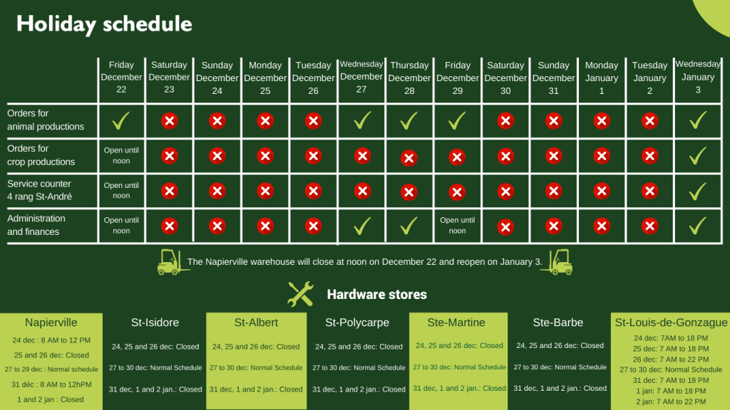 December 23 to January 3: We’ll be resting our feet on a velvet footstool waiting for Santa Claus. Don’t panic, we’ll be back rested on January 3, 2024. We may still have log crumbs on our shirts, but we’ll be there.