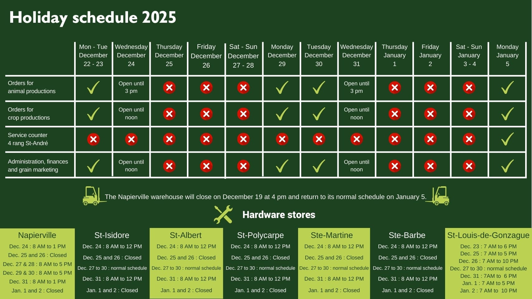 - Open on Monday, December 29, as well as December 30 and December 31 until noon.