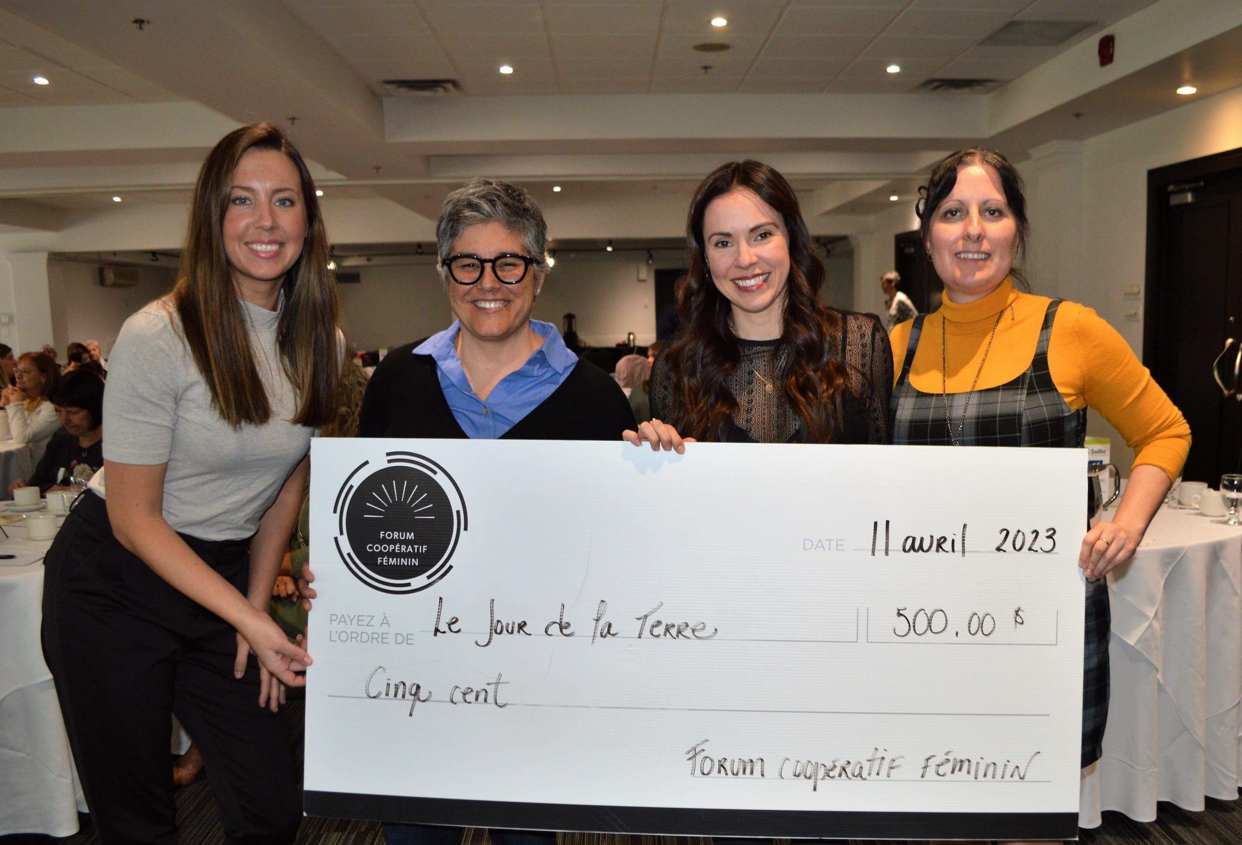 The organizing committee of the Women’s Cooperative Forum presented a donation of $500 to Earth Day, the equivalent of $5 per participant. The symbolic cheque was presented to Ms. Valérie Mallamo, Executive Director of Earth Day Canada.