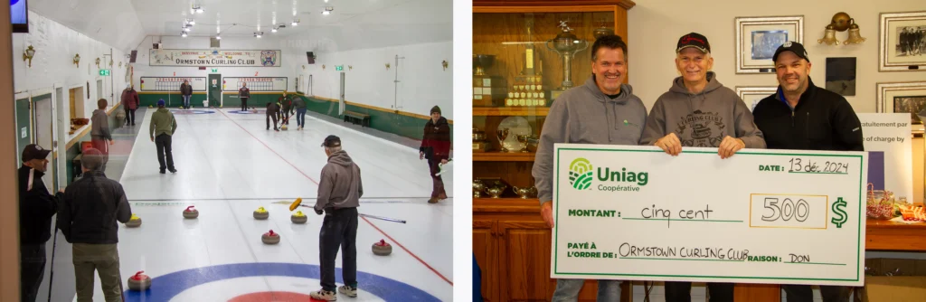 December 13 at the Ormstown Curling Centre (Ormstown, QC) – 70 participants had the opportunity to learn or perfect their curling techniques in a friendly, sporting atmosphere. After the effort, a comforting meal of chilli was served to round off the day in style. On this occasion, Uniag Coopérative was pleased to present a cheque for $500 to the Ormstown Curling Club, in support of their efforts to promote the sport in the region.