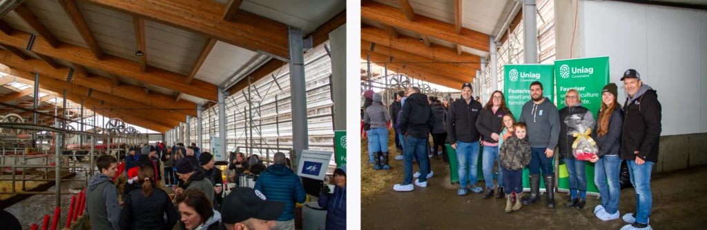 December 11 in the new Terryland Farms barn (St-Eugène, Ontario) – The open house event brought together nearly 200 members, partners and employees of the cooperative, all curious to discover the modern barn, freshly fitted out with a free-stall herd and a top-of-the-range robotized milking system.
