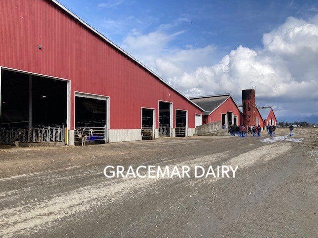 In the Fraser Valley, land is worth around $120,000 per acre. This is due to urbanization and competition with vegetable producers and blueberry growers. Nevertheless, Gracemar Dairy is planning to invest in land purchases, as they only own 300 acres and rent 700 acres at $1000/acre.