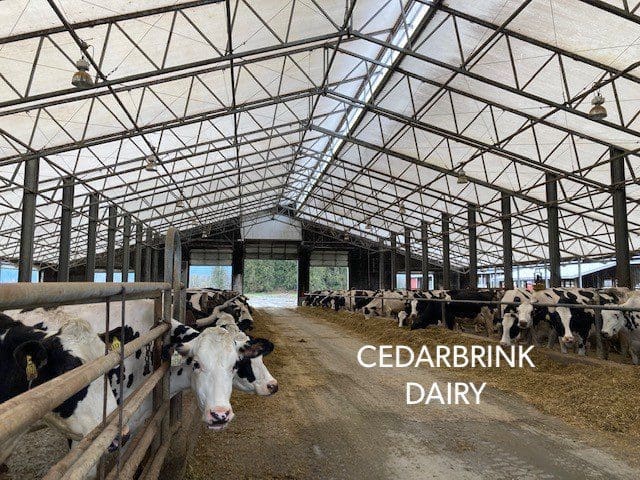 Cedarbrink Dairy is run primarily by Nigel Vandenbrink, 35 years old, 3rd generation from Holland. The farm has 800 cows, producing 1.45 kg of fat per day. The expansion has been quite rapid as the quota has increased by 400 kg in the last 3 years. Another site with 300 cows produces exclusively A2A2 milk. On a third site, located in Merritt, in a more arid climate, they raise their replacement animals in conjunction with another farm as well as fattening steers for slaughter.