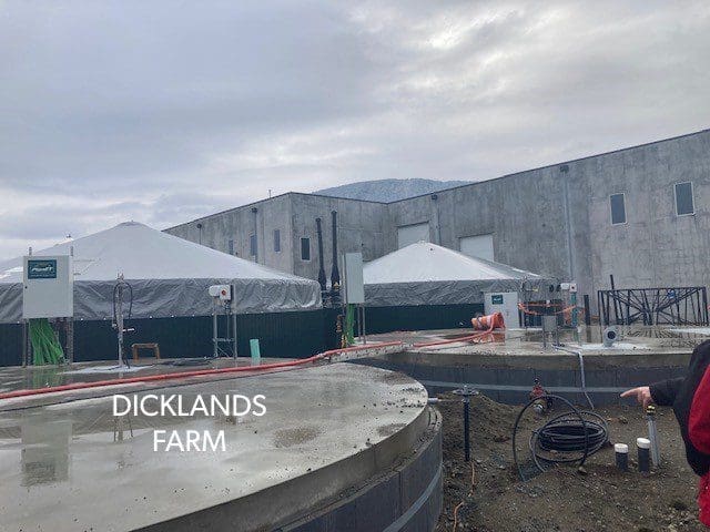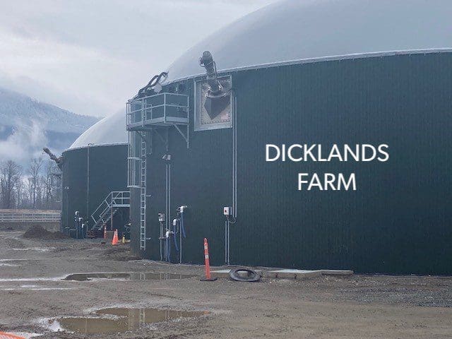 Also in the Fraser Valley, George Dick, owner of Dicklands Farm, showed us his unusual biodigester facility: two 1 million gallon biodigesters (half from farm manure, half from food waste). A building of about 100 x 200 feet houses various rooms equipped with machines that can sort plastic from food waste, separate solid from liquid, dry residues, separate and clean water, and recover and purify hot air using various innovative techniques proven in Scandinavian countries.