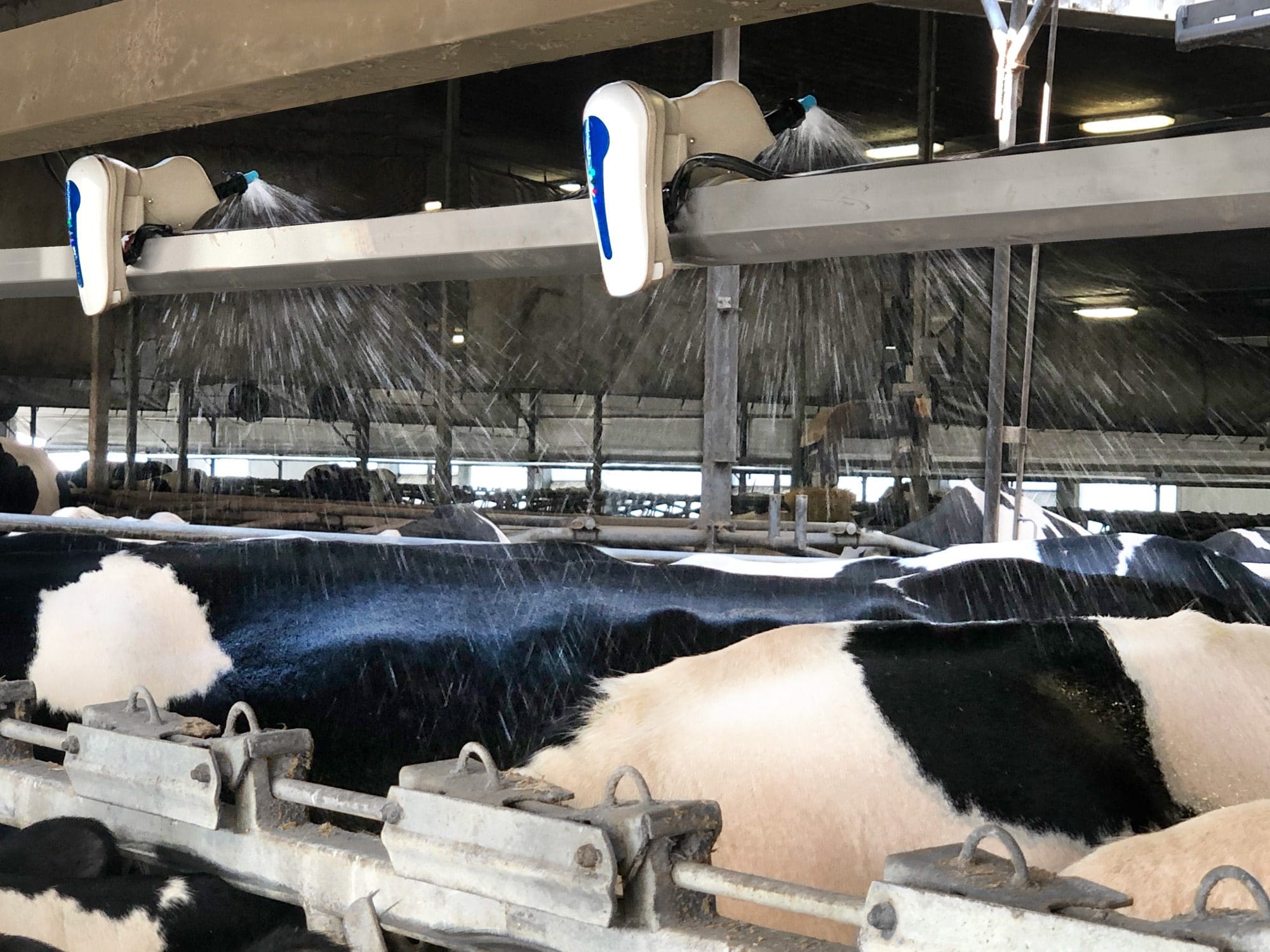 « Les retours de terrain aux États-Unis montrent que, dans une étable sans système de douches, on peut perdre jusqu’à 11 % de production laitière et jusqu’à 22 % de fertilité, rapporte Guy Courcelle. Avec la douche intelligente, la perte de production de lait est réduite à seulement un pour cent, tandis que la perte de fertilité est limitée à sept pour cent. »
